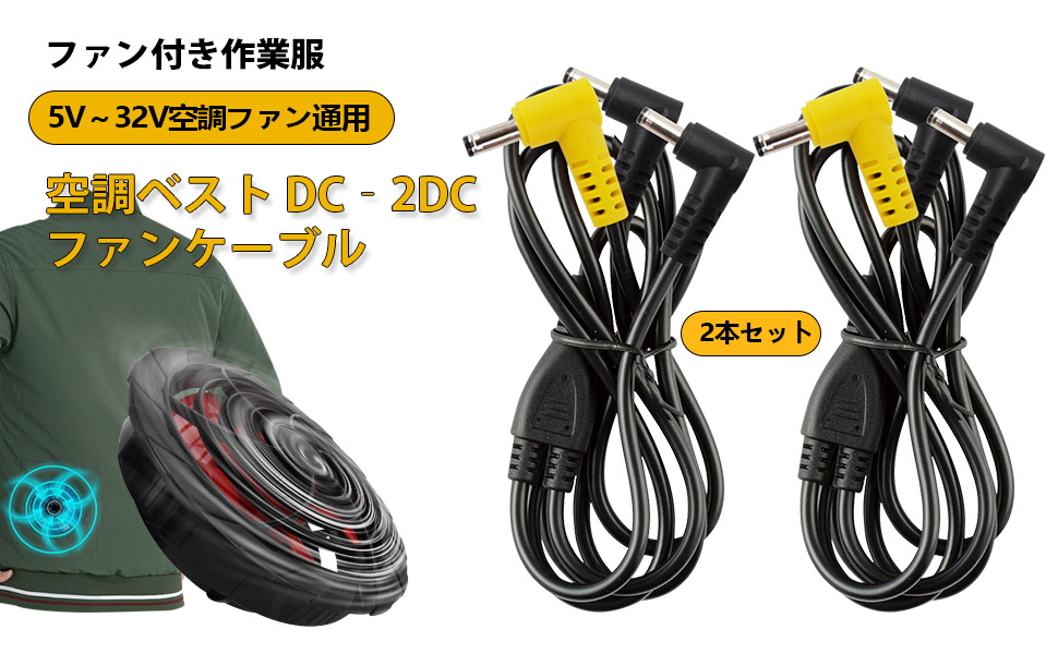 空調作業服 ファンケーブル 5V~32V適用 DC 3.8mm*1.35mm 2本セット
