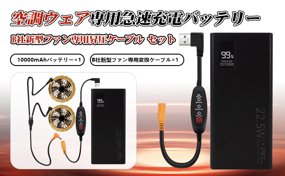 - 【セット内容&1年保証】10000mAh 空調作業服バッテリー本体×1、Type-C充電ケーブル×1、12V B社新型ファン専用USB変換昇圧ファンケーブル×1。保証期間は、お買い上げ後1年間です。1年以内に不具合が発生した場合は新しい商品を交換致します。
